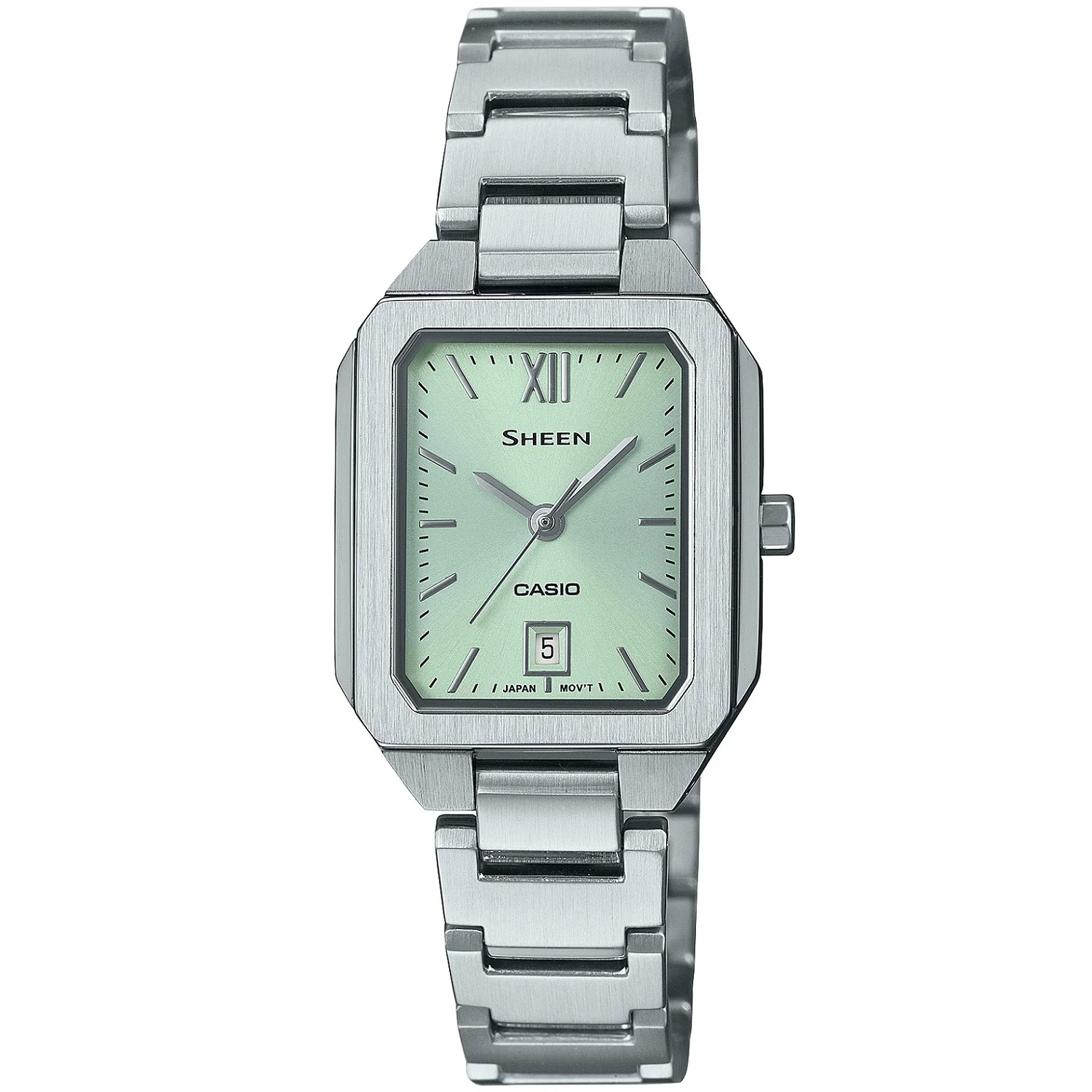 Casio SHE-4555D-3A — это воплощение элегантности и функциональности в женских часах. Эта модель из серии Sheen 4000 выделяется своим минималистичным прямоугольным корпусом, выполненным из прочной нержавеющей стали, который безупречно сочетается с литым стальным браслетом. Прочный циферблат, окрашенный в нежный оттенок зеленого моря, придает часам особую изысканность и защищен сапфировым стеклом, гарантирующим устойчивость к царапинам.Помимо своей эстетической привлекательности, часы оснащены функцией отображения даты и водонепроницаемостью до 50 метров, что делает их практичным аксессуаром на каждый день. Римские цифры на циферблате добавляют классический шарм общему дизайну. Casio Sheen в целом представляет собой коллекцию фешн-часов, созданных для того, чтобы украсить женское запястье и подчеркнуть индивидуальный стиль, а некоторые модели даже инкрустированы кристаллами Swarovski®, для придания дополнительного блеска для вашего повседневного образа.